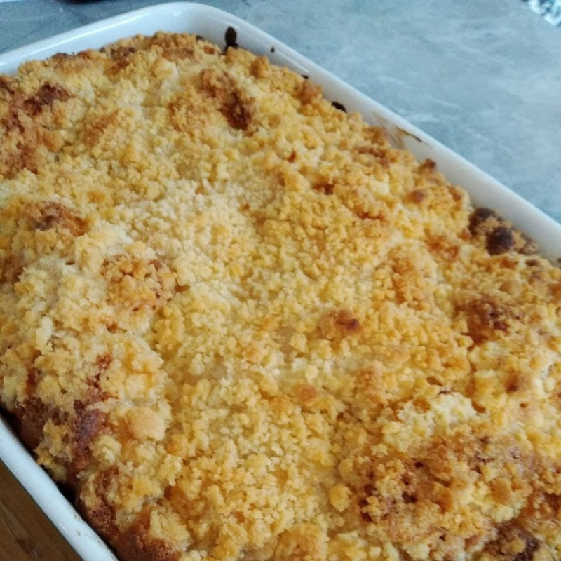 Приготовить штрейзельную крошку. Перетереть руками размягченное масло, сахар и муку. Количество муки регулировать, чтобы получалась именно крошка.