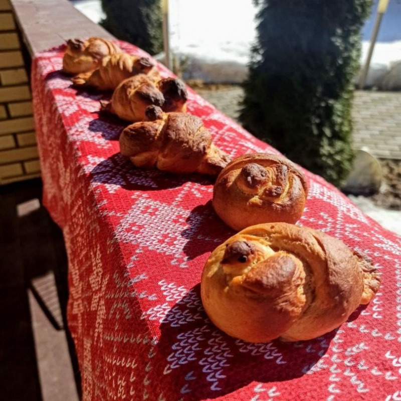 Приведу сразу в этом рецепте и жаворонков, и венок Остары. Потому что по сути используется одна и та же сдоба, просто в разной форме.
