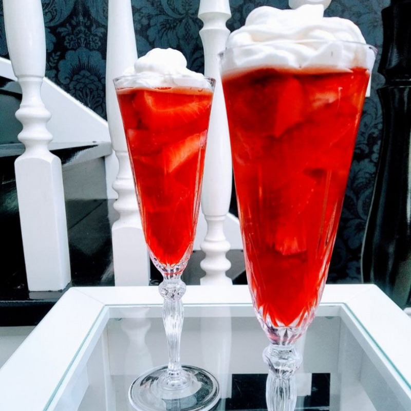 В этом рецепте требуется всего 250-300 мл шампанского, в бутылке же их 750 мл. И упаковка сливок для взбивания тоже 500 мл, а требуется всего 100-150 мл. Но после такого романтичного десерта, всегда можно найти как в жаркую летнюю ночь использовать оставшееся шампанское и взбитые сливки.
