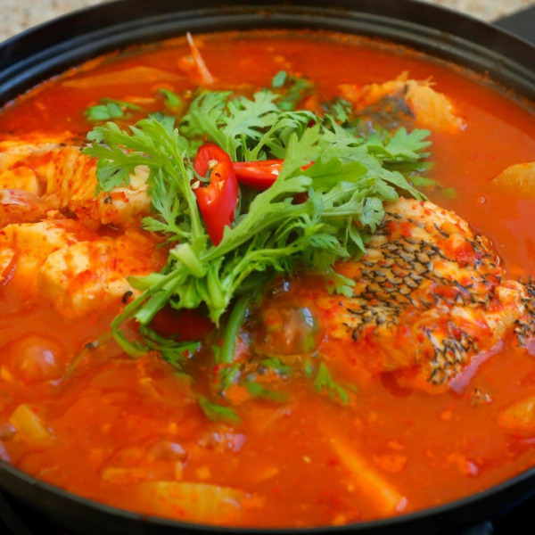 Добавить оставшийся бульон и дать закипеть. После этого положить в суп филе трески, порезанное на небольшие кусочки. Варить до готовности трески, примерно 10-15 минут. При подаче украсить зеленью.