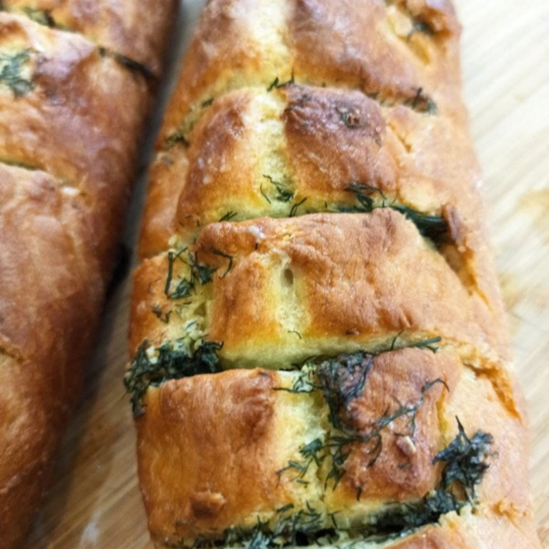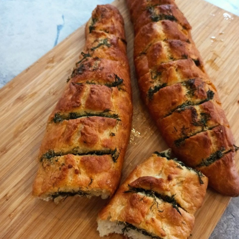 Мне кажется, мало что может сравниться, с нежным мякишем, аппетитной корочкой и все это еще и пропитано чесночным маслом с зеленью. Он хорош и в горячем виде, только что из духовке, и в холодном. В февральские холода он особенно хорошо идет с тарелкой согревающего супа.
