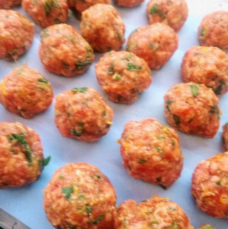 Для фрикаделек в миске смешать баранину с мелко нарезанной мятой. Добавить сухой чеснок, соль, перец, лимонную цедру. Также стоит немного добавить воды, потому что иначе фарш будет очень густой. Все тщательно вымешать. Из полученного фарша сформовать шарики диаметром 1,5 см, на время положить их в морозилку, чтобы они схватились и не развалились сразу в супе.