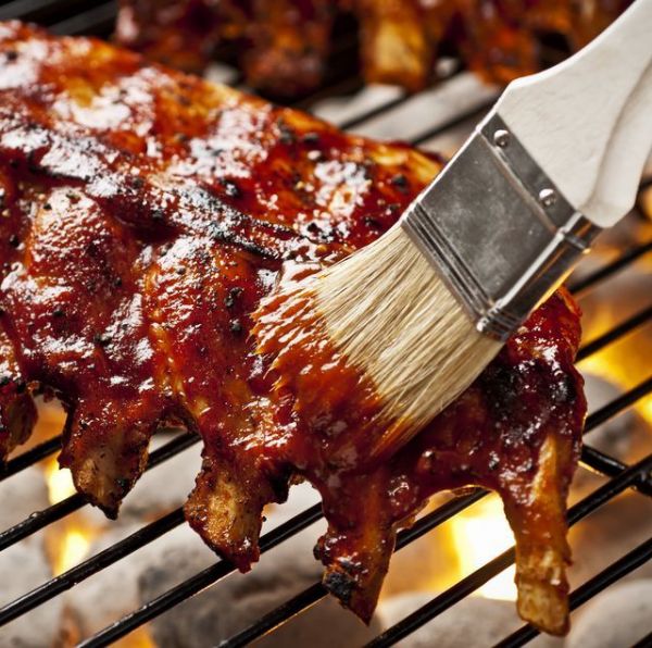 Перед приготовлением ребра достать заранее, чтобы они были комнатной температуры. Обжаривать ребра на решетке, периодически переворачивая. Смазать в процессе ребра глазурью с двух сторон с помощью кисточки. Довести до готовности.