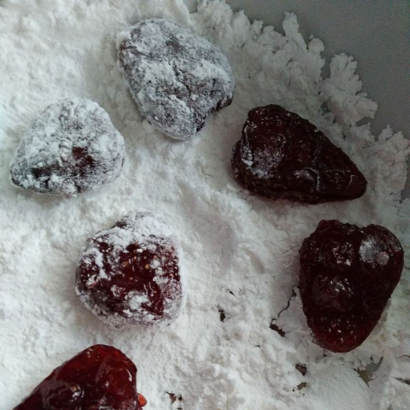 Такой способ приготовления исторически назывался сухим вареньем, более привычное название сейчас - цукаты из клубники. Важно выбрать не крупную, плотную ягоду. Чем менее она водянистая, тем лучше результат.