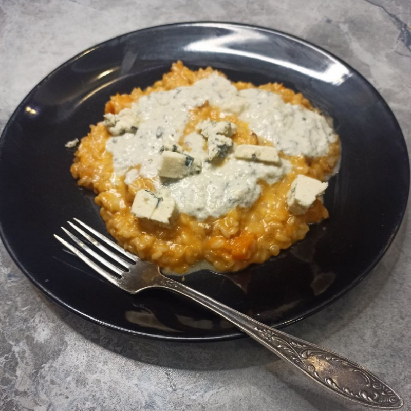 Тыква великолепно сочетается с сырами. Горгонзолу легко можно заменить на другой сыр с голубой или зеленой плесенью. Просто подобрать то сочетание остроты и сливочности, которое вы любите в сырах.