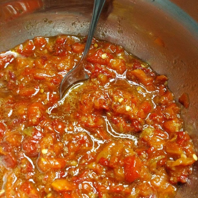 Получившийся острый соус оставить в холодильнике на несколько часов перед подачей. Также можно закрыть его в стерилизованные банки и хранить в холодильнике.
